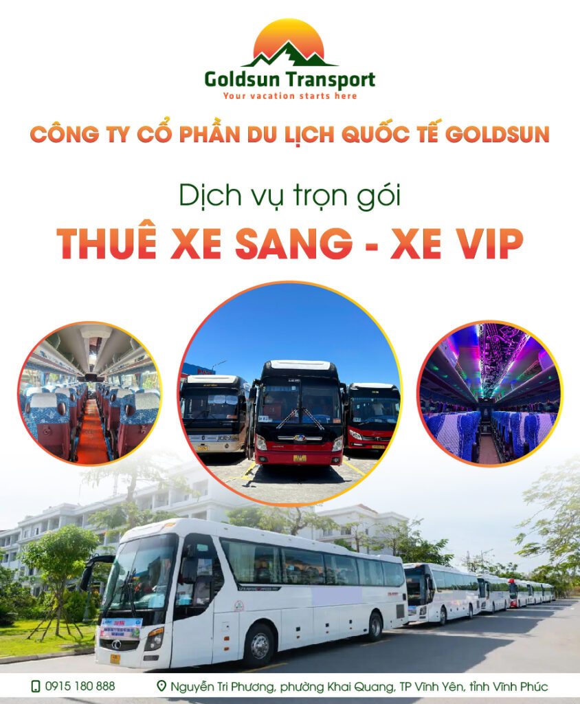 Goldsun Transport có trụ sở tại đường Nguyễn Tri Phương, phường Khai Quang, TP Vĩnh Yên, Tỉnh Vĩnh Phúc. Với vị trí thuận lợi, chúng tôi dễ dàng phục vụ khách hàng không chỉ tại Vĩnh Phúc mà còn ở các tỉnh lân cận. Dịch vụ uy tín và chất lượng của chúng tôi đã được khẳng định qua nhiều năm hoạt động trong ngành, khiến Goldsun Transport trở thành một trong những vị trí hàng đầu trong lĩnh vực thuê xe du lịch tại Vĩnh Phúc nói riêng và trên toàn quốc.